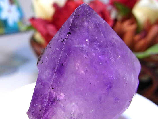 天然石アメジスト宝石の写真サンプルです。5センチぐらいまでデジカメを近づけて接写撮影すると、アメジストの内包物までしっかり写っています。