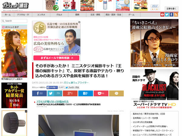 【王様の撮影キット】が、全国のおもしろITグッズを紹介しているWEBマガジンガジェット通信に掲載されました。