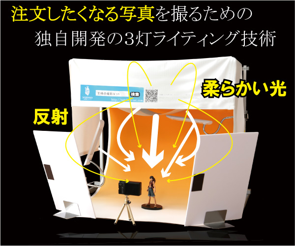 王様の撮影キットは、王様の撮影キット:スクエアにフルモデルチェンジしました。ボックスタイプになり、今までより外の天気やお部屋の照明に影響を受けにくく安定した環境で撮影可能になりました。また販売価格が1/3まで下がりました。